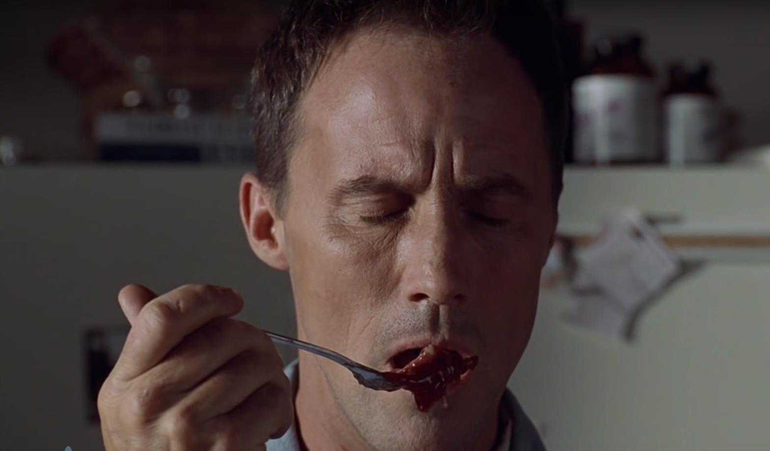 这里还要补充一点,男主在中了诅咒之后,一直怀疑自己的医生和自己的妻子有一腿(片中有较为明显的暗示),所以他诱骗妻子吃下了派,结果她痛苦地离世。