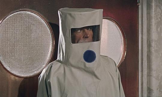 而后,007想方设法从关押的密室的通气孔逃出,并假扮成岛上的工作人员,混进了控制大厅。