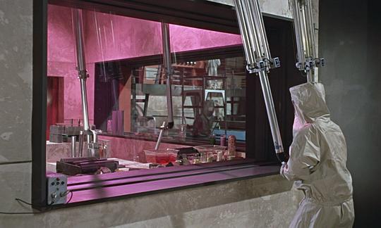 进入基地后,由于007和哈妮在岛上活动,身上有大量的核辐射,基地的实验人员对他们进行清理核辐射,007得知卡基岛的矿石含有放射性。诺博士是个妄图统治世界的科学家,诺博士的另一个身份是魔鬼党(幽灵党spectre)的成员,他在岛上建造了一个原子能基地,试图通过这里破坏一次导弹试验,并利用它进行恐怖活动。