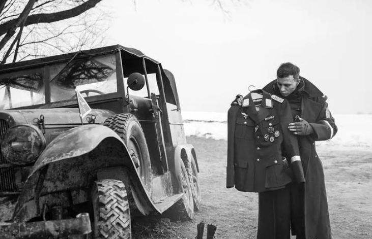 1945年3月,赫罗德随部队溃败回德国,不知是与部队失散还是故意逃跑,反正他落单成了逃兵,在当时逃兵被抓住是会被送进惩戒营的,所以赫罗德逃亡的日子并不好过。一个意外的机会,他在一辆废弃的汽车里发现了被遗弃的行李,里面有一套德国空军上尉的制服,看着眼前的制服,一个大胆的计划闪现在他脑子里。
