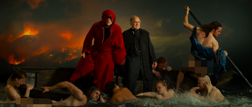 电影高潮出现在维吉尔带领杰克游览地狱的时候,他们穿行在不同的区域,见识着《但丁神曲》中描述过的那些场景。作为观众,我们已经被这些极具创造力和想象力的场景迷得如痴如醉,尤其是当《但丁和维吉尔共渡冥河》这幅名画恰在好处的出现在画面中时,《此房是我造》已经足以载入史册。