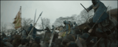 战役最终如罗伯特所计划的一样在劳顿山打响。镜头在两军冲锋前产生了短暂凝固的化学效应,导演将这一触即发的瞬间拿捏得恰到好处,之后瞬间放弦,骁勇善战者,狼狈嚎啕者,在这一刻都被气势如虹却又血肉横飞的战争笼罩着。这史诗级的战争画面,这恢弘的视听感,让南瓜君不由地想说,只有亲自观影方能体验。