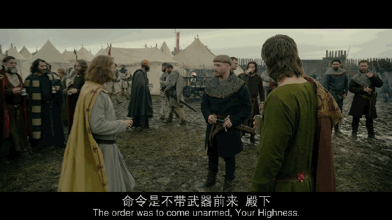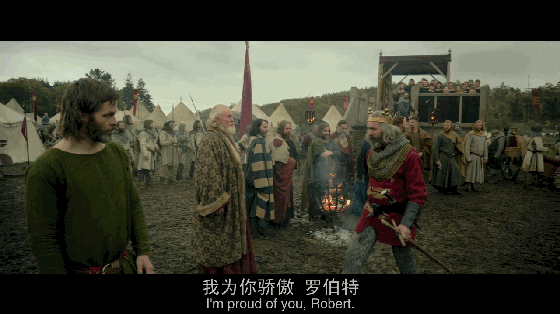 《法外之王》开篇即是罗伯特·布鲁斯被迫降于长腿国王爱德华一世:一段恢弘的九分钟长镜头语言,通过内文外武和夯实的政治言辞,把历史背景、人物性格、人物关系、势力分布以及社会大环境陈述的清清楚楚。