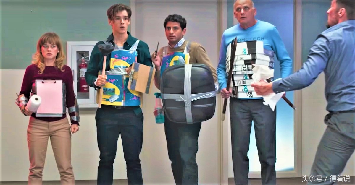 相对于得着以前看过的那部《贝尔科实验》,《办公室僵尸起义》在故事要素上做得还算细致。与莫名实验或奇异病毒比起来,本片至少把“正常人变暴躁僵尸”的过程说清楚了,从武器公司合并的这个背景,挟私报复的武器研发者这个出发点,到喝毒饮料变僵尸这个过程,都能让故事变得自圆其说。