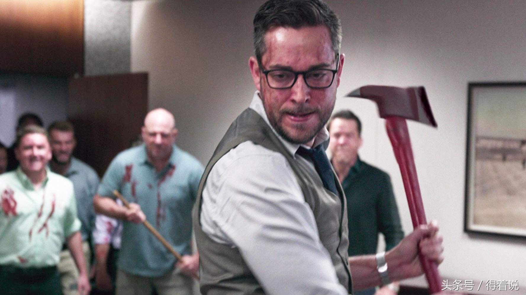 “办公室+打僵尸”算得上欧美cult片的“主打元素”,此前的《大骚乱》、《贝尔科实验》,到今年的《办公室僵尸起义》,办公室里血浆崩裂、人头落地的场景可谓是此起彼伏,小人物逆袭英雄、抱得美人的情节也变得耳熟能详。想来对于习惯了隐忍沉默的上班族们来说,这种血脉喷张式的爽快感,还真是够合胃口的。