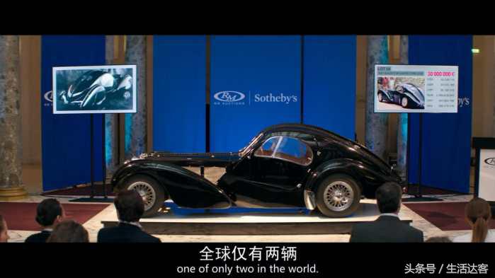 布加迪type 57sc atlantic coupe. 这款车在最近一次拍卖(大概是在2010年),连各税费拍出了$40,000,000!翻译成中文就是四千万美元!显然影片中内容清洁符合现实的。