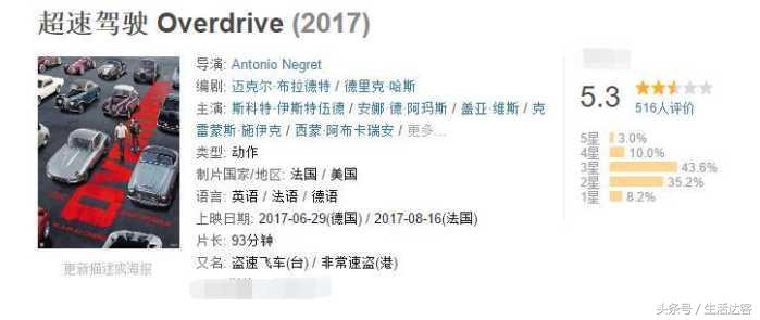 超速驾驶驭2017年上映,在国内评分为5.3分。