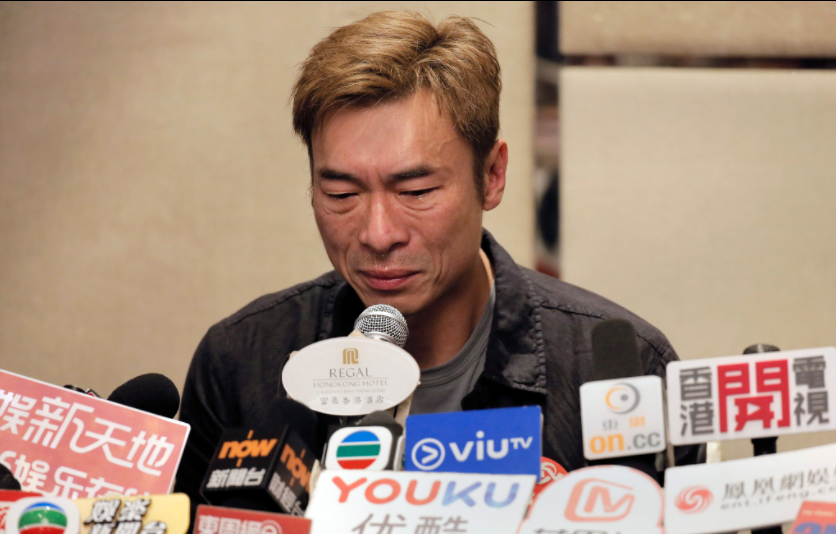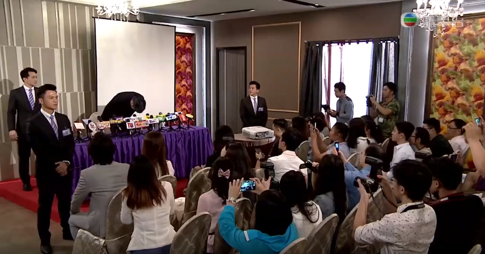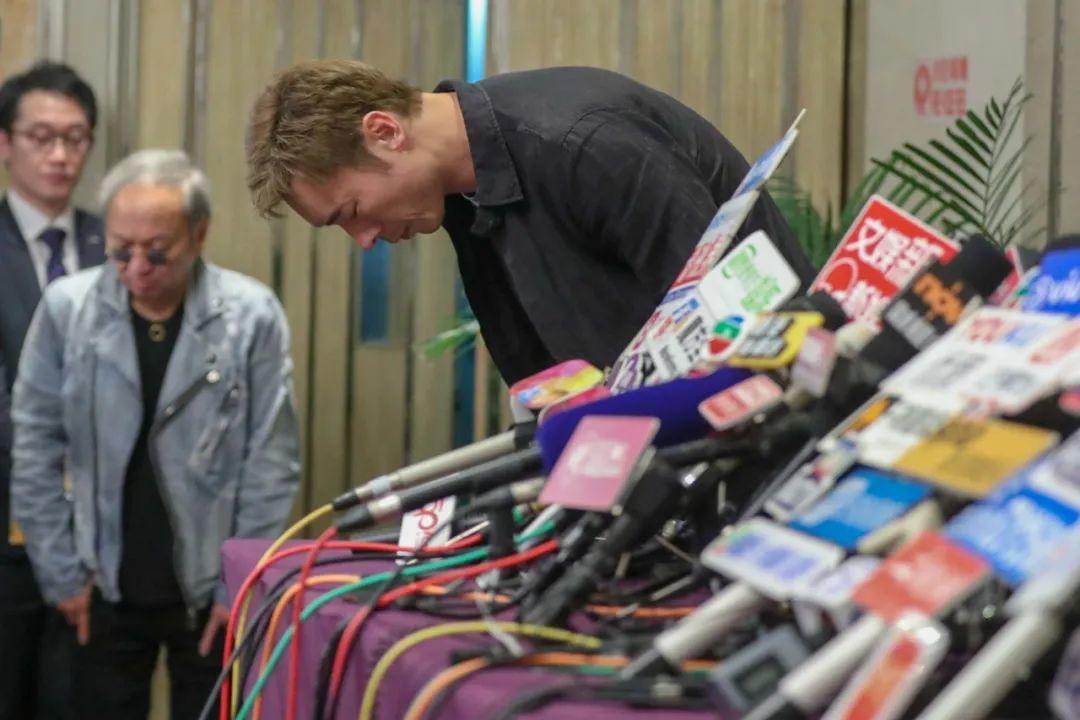 男星在丑闻爆出后,召开新闻发布会。