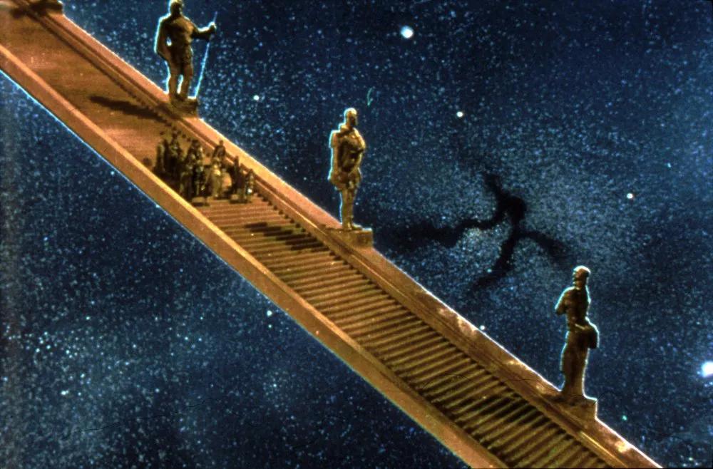 在迈克尔·鲍威尔和埃默里克·普雷斯伯格大胆的彩色幻想电影中,二战飞行员大卫·尼文在一场本应让他丧命的空难中幸存下来后,发现自己被召唤到了天堂。