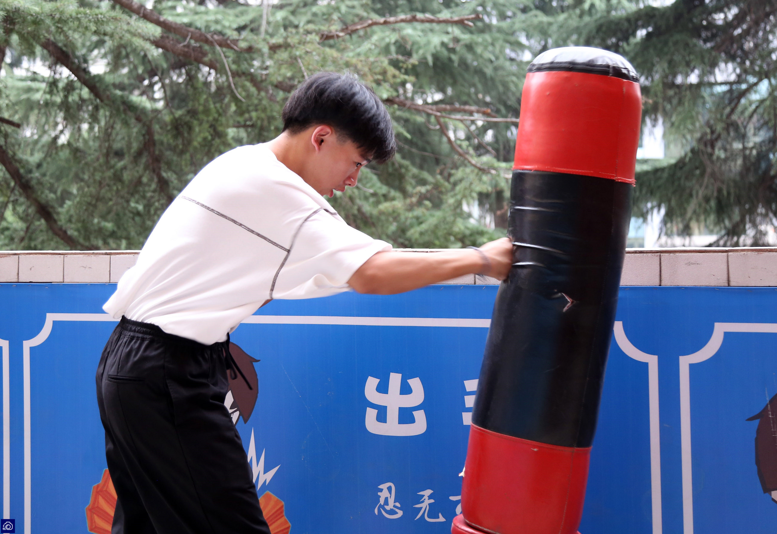 据洛阳八中政教处主任蒋老师介绍,学校第一年刚设置宣泄场的时候,很多学生只是好奇,主动来这里击打不倒翁的人并不多,后来,随着知道的人慢慢增加,一些性格比较外向的学生,忙完学习走出教室后就会专门跑过来释放一下。时间久了,性格内向的学生也开始趁着晚自习或者课间人少的时候去打几下。