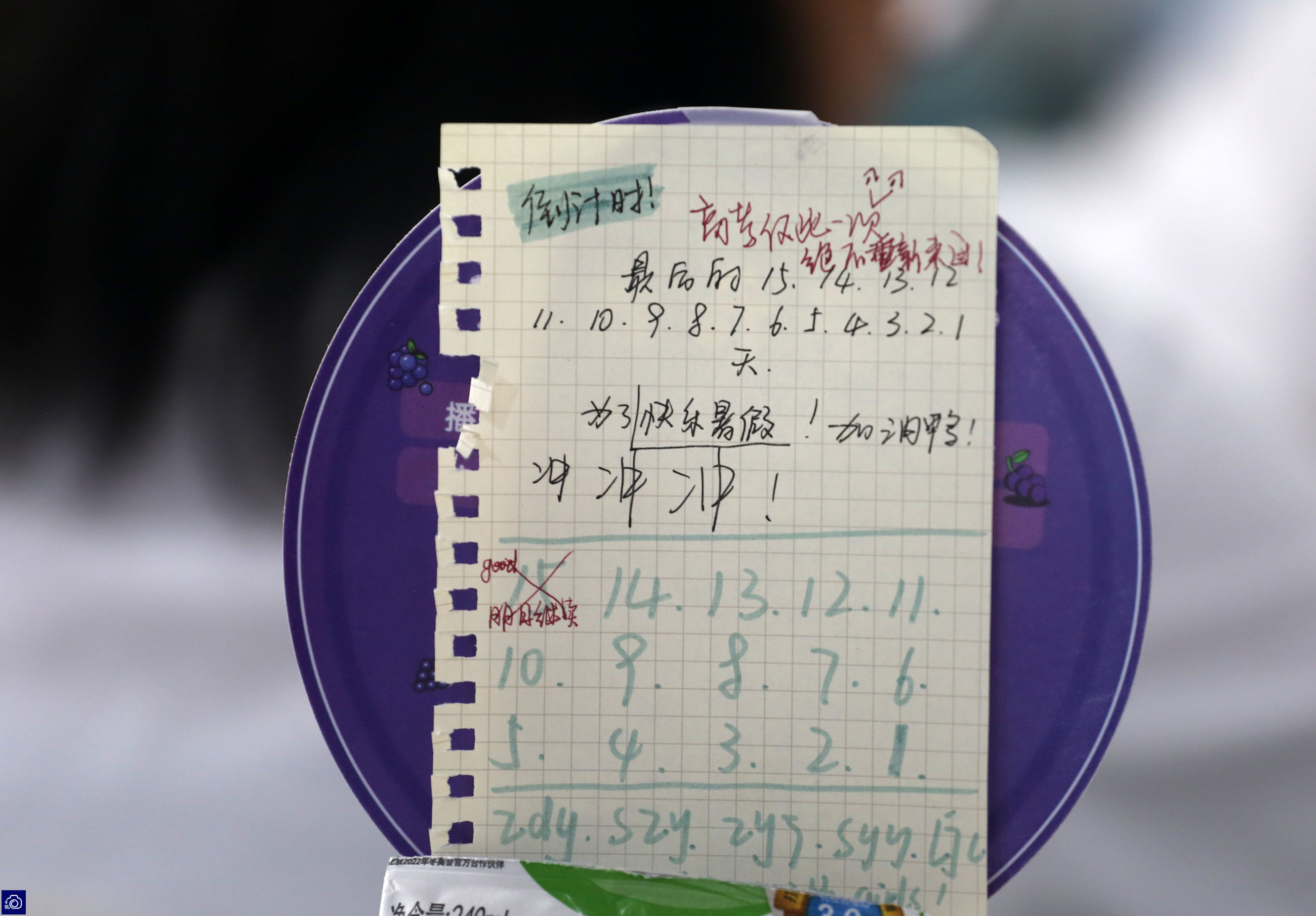 很多同学的课桌上都张贴着“高考倒计时”日程表,一起为他们加油吧!(摄影:陈杰)原创作品,未经授权,严禁转载。