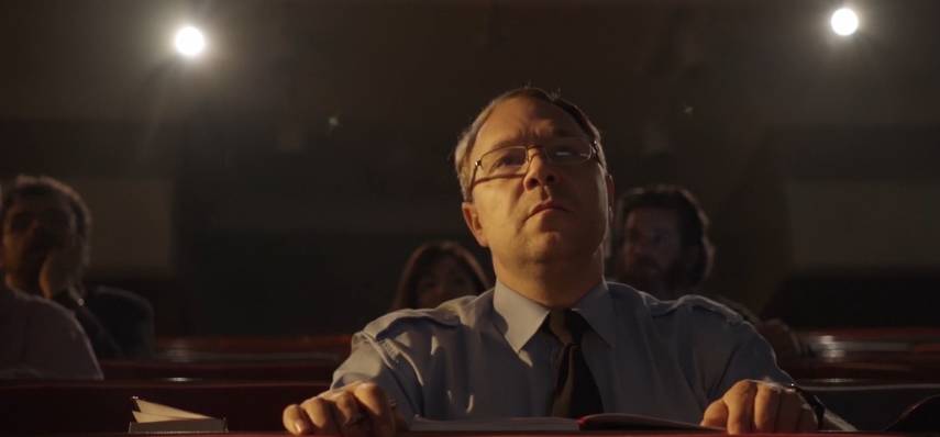 保安利用手上这个把柄,开始纠缠希尔,一起压铁轨,看艺术展,甚至还去大学蹭他的课。