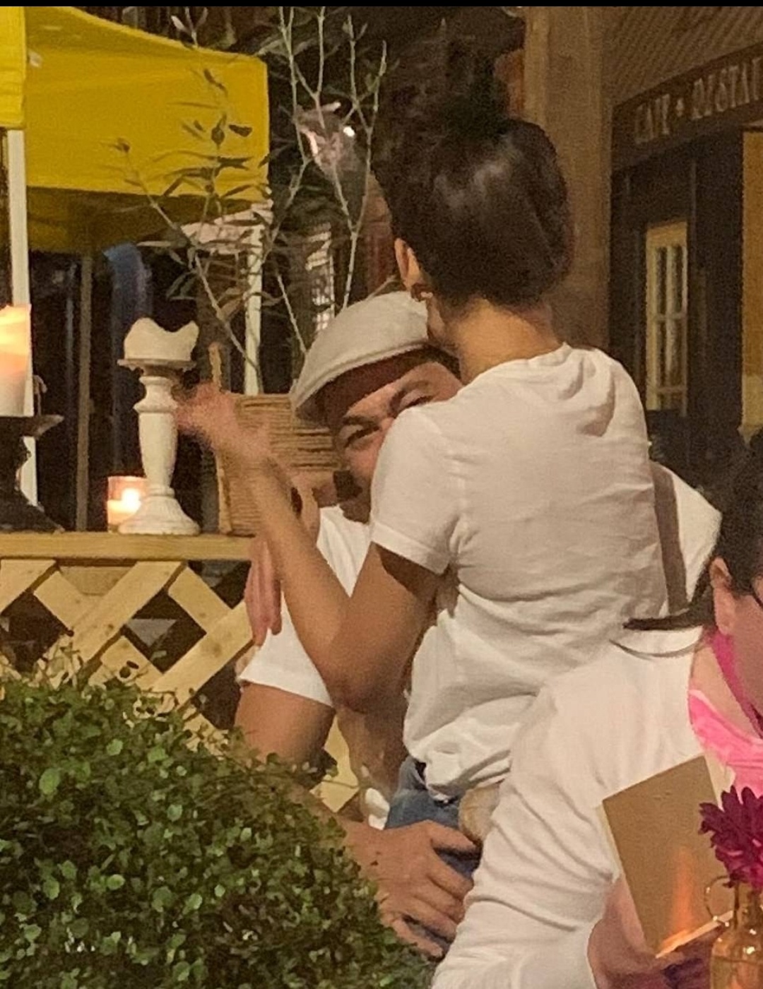 照片中katie holmes和她现男友emilio vitolo jr上身都是低调清爽的白色t恤衫,疑似情侣装,katie holmes下身穿着很普通的牛仔裤,发型也是很随意的高丸子头,亲昵的坐在emilio vitolo jr腿上,两个人旁若无人的打打闹闹。
