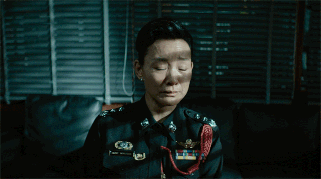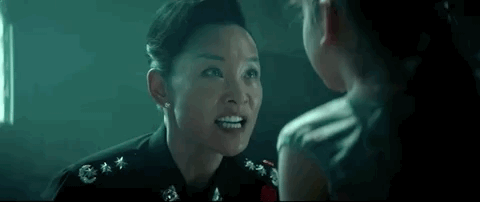 一次是小女儿目睹了母亲和姐姐埋尸过程;一次是肖央偷听人们谈论破案进展时,一抬头,陈冲正恶狠狠盯着他;还有一次就是陈冲最后对着肖央小女儿的咆哮,目眦尽裂。这三次眼神杀让人直观感受到了什么叫不寒而栗。
