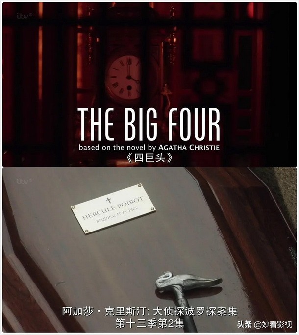 这集《四魔头》可谓是充满噱头,波洛开场即死,一群旧友纷纷从退休生活中抽出身来,参加波洛的葬礼。时隔多年,老的四人组再聚首。