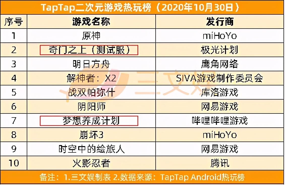 taptap二次元游戏热玩榜方面,米哈游的《原神》继续蝉联榜首,截至10月30日,在taptap上有512.03万人安装, 599.42万人关注。