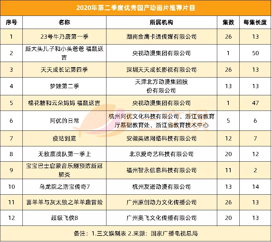 10月26日,国家广播电视总局发布了2020年第二季度优秀国产电视动画片推荐片目。