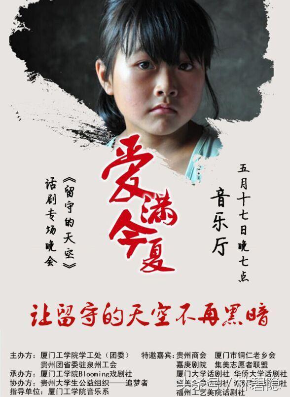 这是由厦门工学院学生社团星辰剧社演绎的公益话剧《留守的天空》节选片段。这部以留守儿童为题材的话剧,也因故事内容真实感人,演员表演投入细腻,获得了“全省社团前五十强”的荣誉称号,并受邀出席福建省高校社团“首届嘉年华”活动。