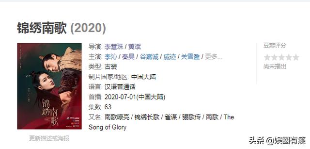 另外,看到《锦绣南歌》这部剧的剧名,突然让人想到了唐嫣的《锦绣未央》,毕竟两部剧的名字未免也太相似了,而且都是“锦绣”加上女主的名字作为整部剧的名字。