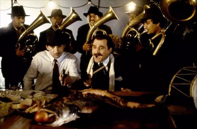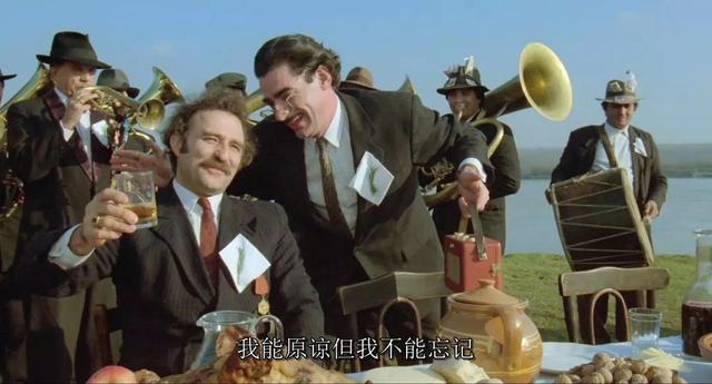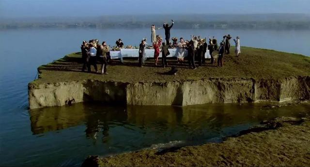 他在片尾呈现了一个乌托邦的世界,在一块临海的草地上,那三个混蛋与好友冰释前嫌,大家互相拥抱,举杯庆祝,身后还是那个赶都赶不走的管弦乐队。