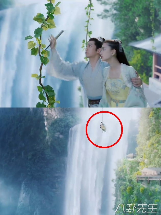 另外的场景,钟汉良抓住这支假树枝,就带着bab平稳地飞跃瀑布了▼