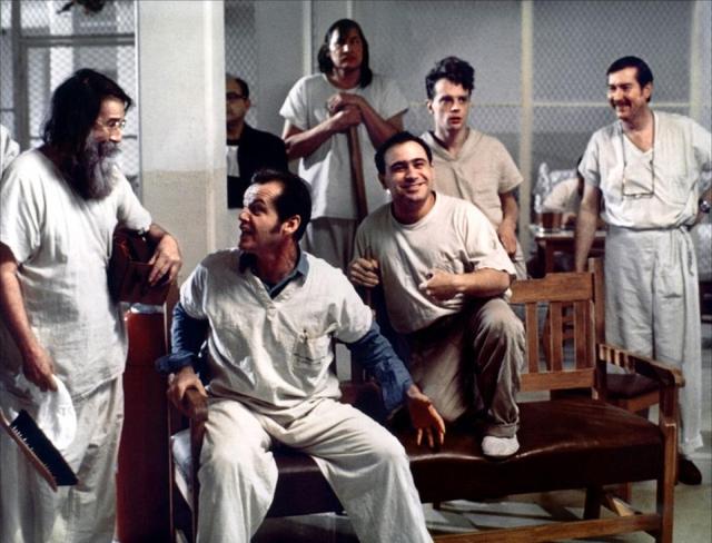 在体制化与反体制化、自由与麻木的故事中,《飞越疯人院》与《肖申克的救赎》、《楚门的世界》一样猛烈、酸楚。但是,它更加让人绝望。不同于《肖申克的救赎》中的犯人他们是被迫的,不同于《楚门的世界》里的楚门他是被骗的,但《飞跃疯人院》里的病人却是自愿的。他们自愿来到这个地方,在他们眼中,这里不是什么高度集权化的社会,而是帮助他们逃离现实世界的伊甸园。