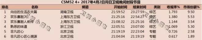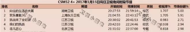 根据csm52城数据统计表明,第一期收视率0.361%,第二期收视率0.237%,第三期收视率0.248%,第四期收视率0.259%,第五期0.329%,收视可谓惨淡。