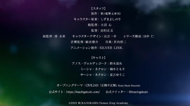 声优方面在宣布动画化的时候就已经有透露过,男主角阿诺斯的cv是铃木达央,他曾经配过《笨蛋测验召唤兽》的坂本雄二、《free!》的橘真琴、《终结的炽天使》的柊深夜等等;