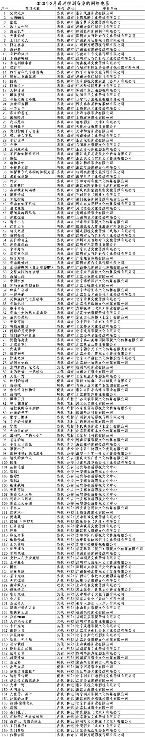 近日,广电总局发布2020年3月份全国重点网络影视剧拍摄规划登记备案情况,在通过规划备案的313部网络电影中,现实题材占比70%,重大现实题材9部,都市题材85部,农村题材9部,青少题材3部,公安题材12部,科幻题材38部,传记题材12部,传奇题材32部,武打题材60部,其它题材53部。