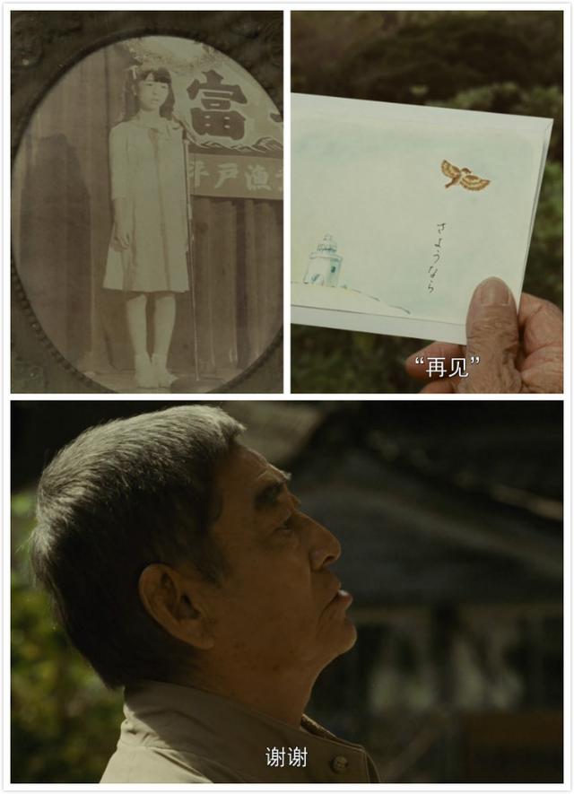 在一所简陋的照相馆门前,橱窗里那张年代久远且颜色泛黄的老照片,在那一刻俨然成为了仓岛和洋子之间灵魂的沟通者,千言万语都无法表述的真切爱意,全都蕴藏在了洋子的这张童年旧照以及她在信上留下的那句简简单单的“再见”之中。