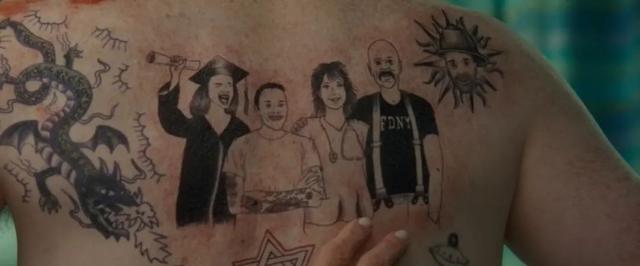 前半程,我们都把他的纹身当作一个笑话,包括他想开一个边纹身边吃饭的餐厅这种荒诞不经的想法,但是当我们看到斯科特给小男孩画的那个超人的时候,我们就像雷一样被震惊了,一方面我们发现原来斯科特在绘画上的才艺其实并不简单,另一方面,画出这个孩子心目中超人的斯科特,是否变成了孩子心中的超人呢?