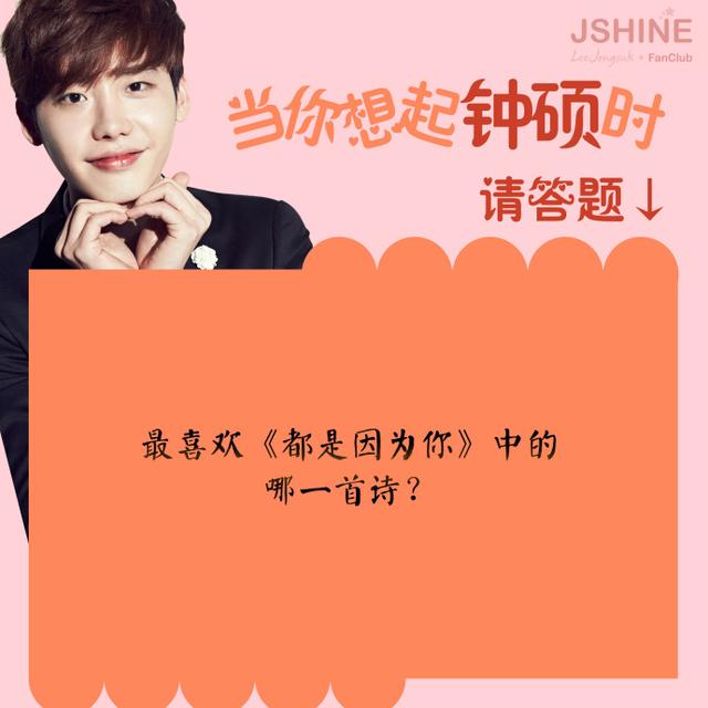2017年李钟硕带给我们最大的惊喜除了在fm上跳了舞以外,那就是12月的《都是因为你》诗集,所以,请大声的说出来,你最喜欢的一首诗!