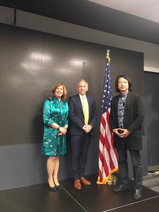 在硅谷国际展览现场,王麒诚与参观嘉宾合影