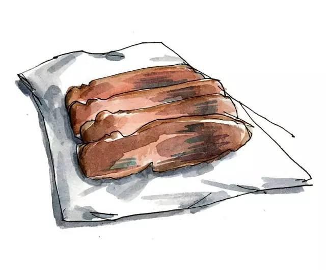 后院烤肉的剩菜,烤焦的部分已经有些苦味——这也是人们喜欢“焦边肉”(burnt ends)的原因。我偏好吃冷热狗,拆下保鲜膜直接吃,如此熏肉香肠才不会在嘴上留下油油的动物油膏。
