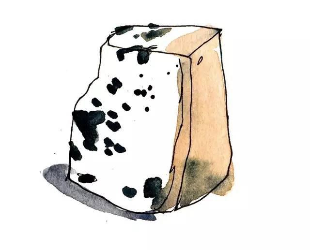 噢!蓝纹奶酪,人为的霉菌,自然的香气!我怎么知道你何时变坏呢?有两项蛛丝马迹:白肉部分已变成干草的颜色;好闻的臭气也冒出氨气的味道。