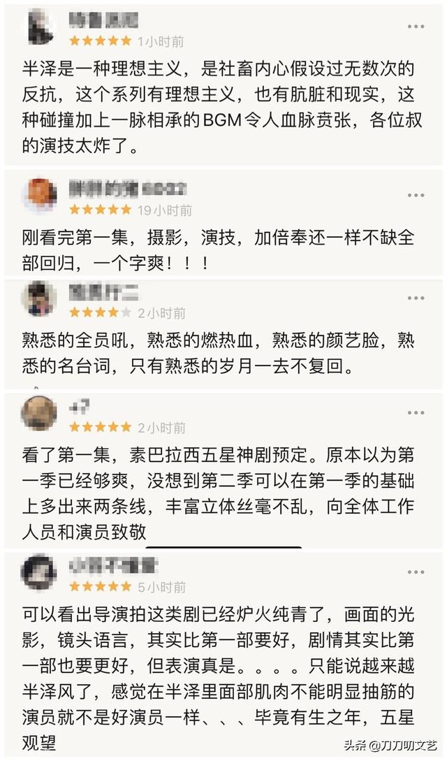 “看了第一集,五星神剧预定,原本以为第一季已经够爽,没想到第二季可以在第一季的基础上多出来两条线,丰富立体丝毫不乱”。