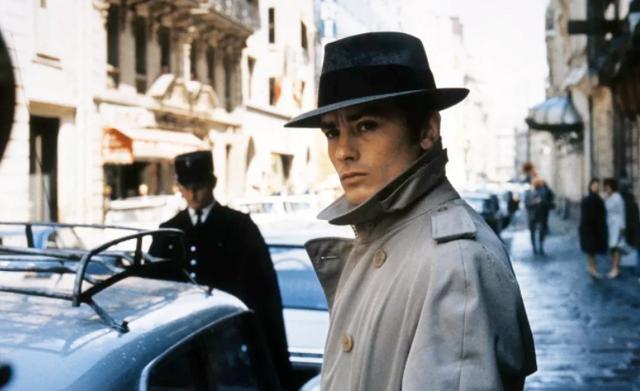 《独行杀手》的伟大之处,直到今天仍可挖掘。首先是导演用极简而有克制的拍摄手法,让节奏缓慢的故事情节有了张力,反转的剧情引人入胜,漂亮而又完美的结局令人拍案叫绝。本来故事情节就很简单,一个叫杰夫的杀手,他立领风衣,宽边礼帽,步履匆匆,很是绅士,但冷峻寡言,独来独往。既然是杀手,就是收钱杀人,别的不太关心。在一次执行任务杀死酒吧的老板后,却被非裔女钢琴师撞见,就是因为女钢琴师作为现场的目击证人,面对警察,她却否定了是杰夫所杀,所以才引起杰夫的疑惑,故事往下开始有了戏剧性的反转。杰夫当无罪释放,警察虽然找不到任何证据,但还是紧紧盯住杰夫,使得杰夫每天避开跟踪穿梭在巴黎的大街小巷中。