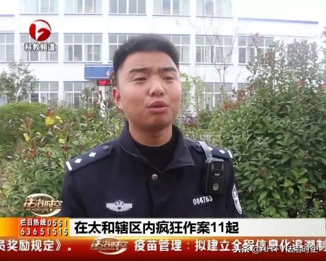 太和县公安局坟台派出所 民警 栾永振:经审讯,郑某交代从11月15日到11月24日,九天内在太和辖区内疯狂作案11起,涉及高庙、双浮、原墙、坟台、二郎等8个乡镇。