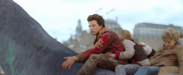 一家人骑鸽子在杜莎夫人蜡像馆上空滑翔