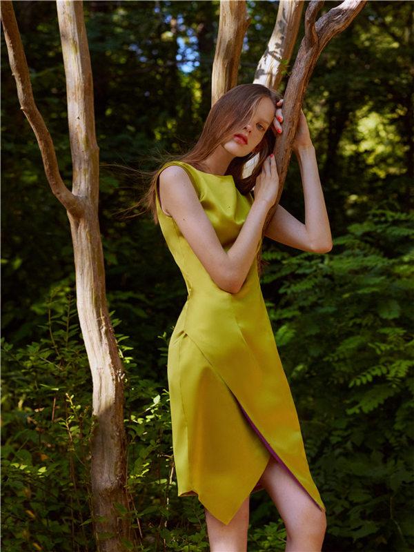 所以这一季的elysée yang有一部分是鲜艳花色的多层浪漫的薄纱,亦或是丝绸的灰色系的连衣裙,古希腊式的宽松款式,系着艳丽的缎质腰带;当微风吹拂时就会给人带来少女般的纯真和任性的感觉;又有着一丝不易觉察的忧伤;另一部分是一些纯白色,姜黄,酒红,银灰色的纯色高科技缎质效果面料制作的套装或连衣裙,妩媚性感,自信。