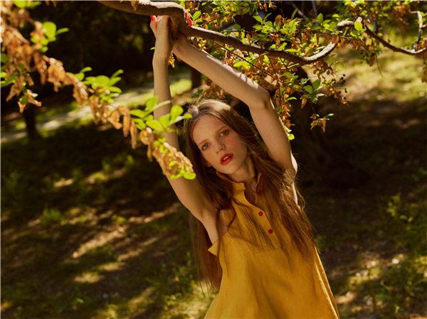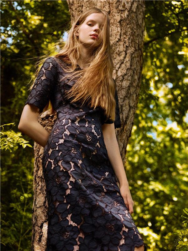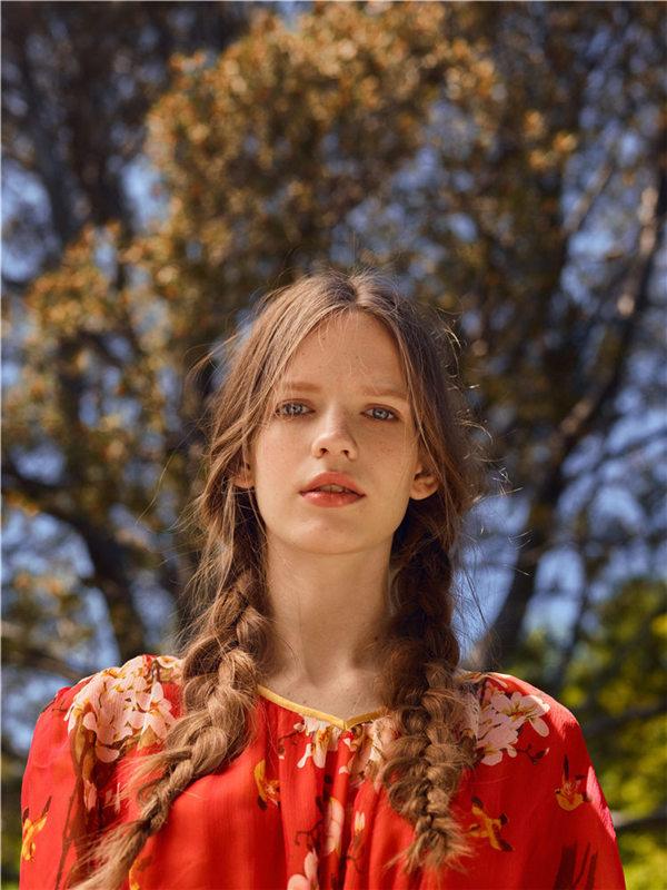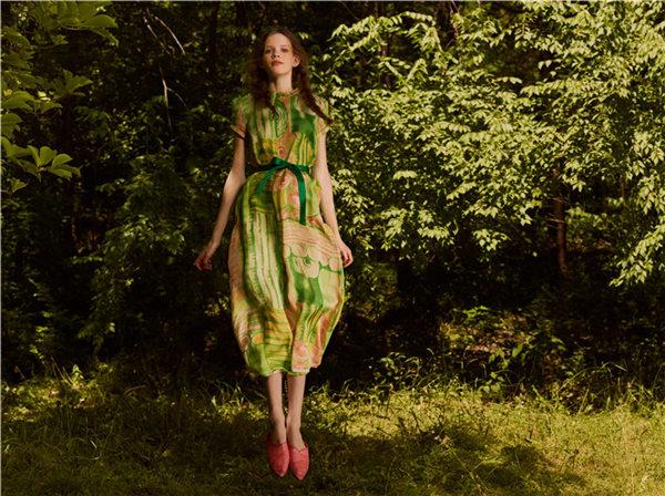 这一季的设计虽然以自然以丛林为背景,但灵感既不来自《爱丽丝漫游仙境》,也不来自《绿野仙踪》,灵感来自法国电影《甘泉玛侬》里那个随着羊群在山间奔跑的任性的野丫头,为父报仇最终又选择了宽恕的艾玛·纽贝阿——一个女孩懂得了爱就会成为女人的故事。
