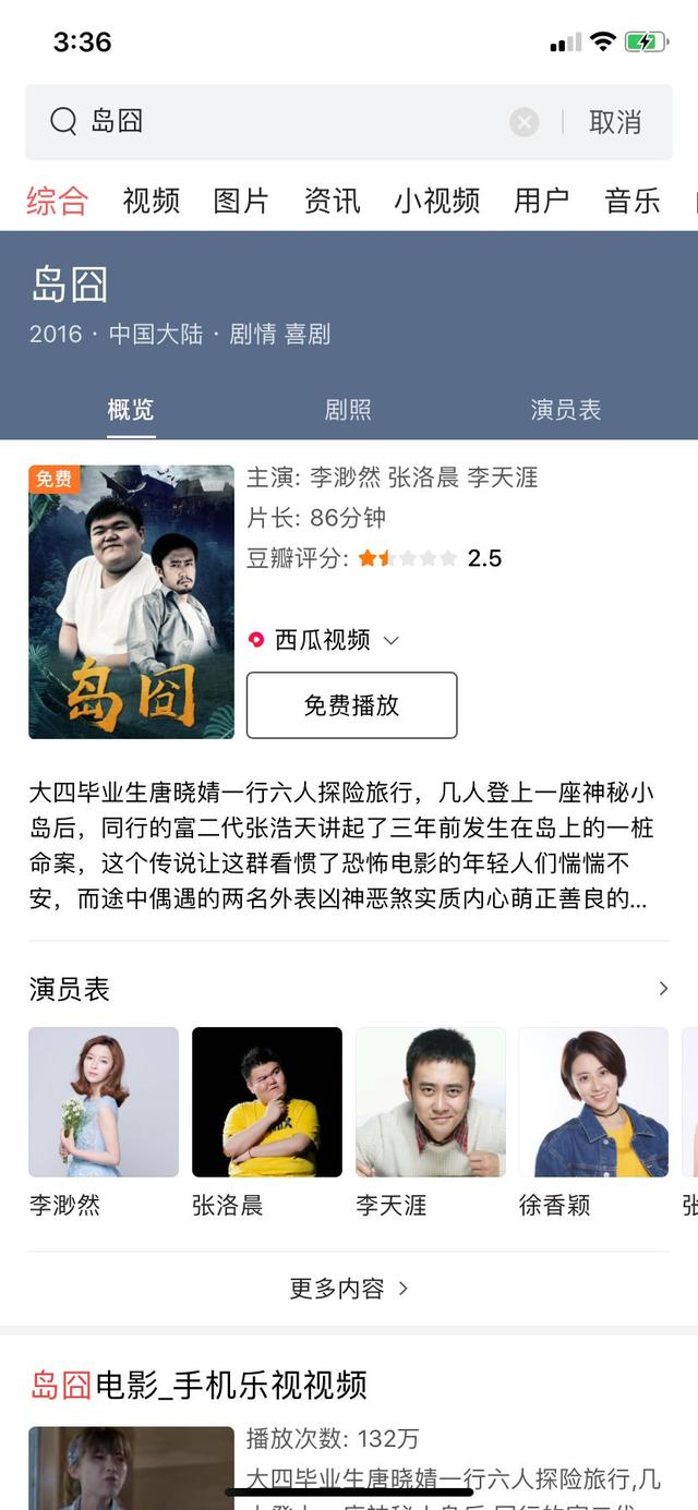 直接用今日头条app上方的搜索框输入“岛囧”,就可以免费观看