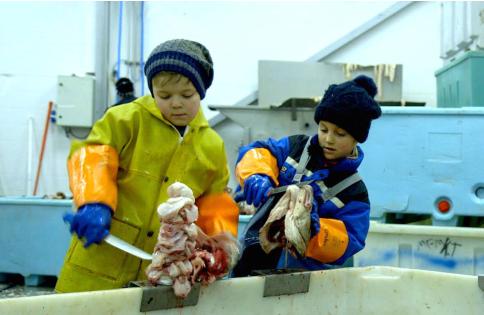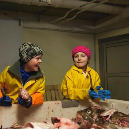 10岁的托比亚斯站在清理鱼内脏的渔民中间。他的面前有一个装满鳕鱼头的大桶,他正飞快地割着鳕鱼舌。在挪威北部小孩子割鱼舌是个有着上百年历史的当地传统。这个寒假来自奥斯陆的9岁女孩伊尔瓦加入到割鱼舌的孩子中,此前她从未接触过鳕鱼头,尖刀,鱼血和内脏…