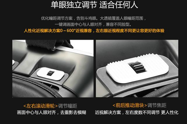 2、是否具备瞳距调节与焦距调节。一定要选择带调节的vr头盔,否则可能出现不适配自己的眼睛而效果不佳的状况,特别是近视眼的朋友想要不带眼镜观赏,焦距调节是必须的。