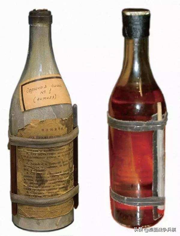 二战爆发之后,这种土制燃烧瓶也同样大放异彩,在芬兰吃了大亏的苏联军队转而使用这种武器来对付德军的坦克,成为了苏联反坦克兵的标配,这种最便宜有效的武器使德军的坦克蒙受了巨大损失。