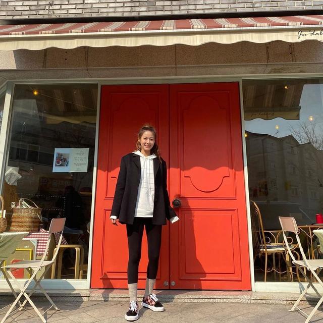 4.卫衣西装配紧身裤:秀腿,撞色