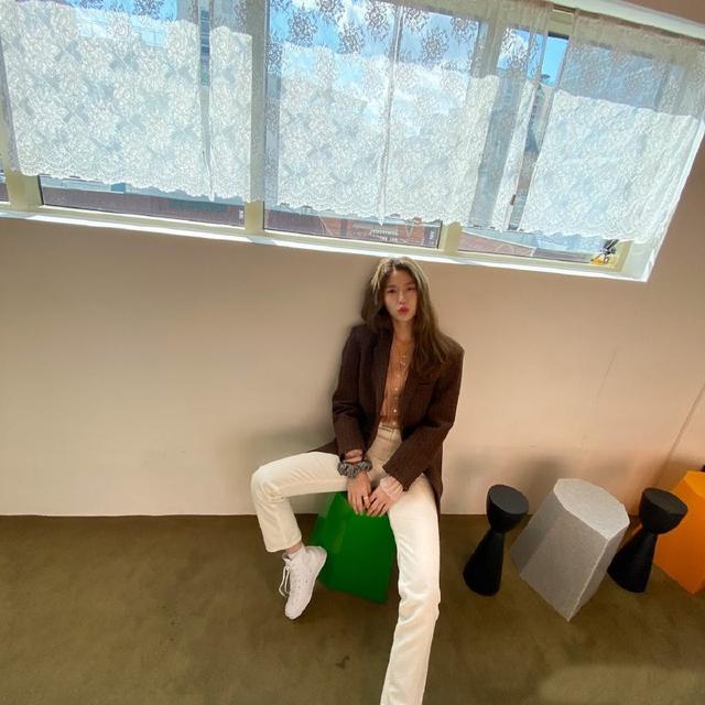 这次,一组金雪炫的私服照曝光了,只见她身穿格纹西装配直筒裤,长腿太吸睛了。金雪炫以针织衫打底,外面穿了件格纹西装,体现出几分复古之风,下身搭配的是白色直筒裤,将其纤长笔直的双腿线条修饰,与格纹西装搭配,混搭出时髦调性,难掩其青春气息,脚踩小白鞋,坐在椅子上凹造型,将左腿伸向镜头,更显腿长。