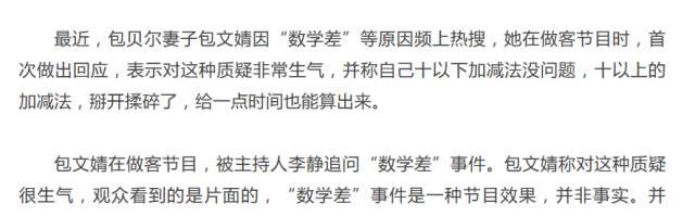 ▲7月,包文婧在《饭局的诱惑2》里公开表示“十以内的加减法”都不会。引来热议,但一个月后,包文婧在作客《拜托了,妈妈》时候又说这只是一个节目效果。我就纳闷了,节目效果?什么时候综艺节目需要嘉宾卖“蠢”人设作为亮点?