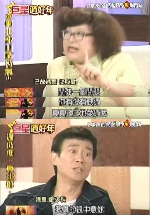 ▲郑少秋一直是沈殿霞心里的一个结。直到2002年,沈殿霞做访谈节目《掌声的背后》,第一个邀请的嘉宾就是郑少秋。面对曾经的背叛,到底意难平的沈殿霞问出这个苦情的问题:“当年你到底有没有真心中意过我?”她始终是要一个答案。一个能让自己把气咽下去的答案。