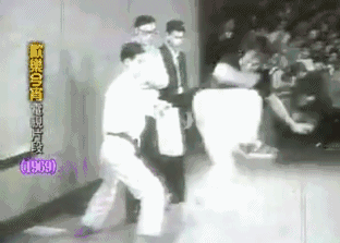 ▲1969年,《欢乐今宵》请到李小龙登台,直播表演赤手空拳劈木板,时隔四十多年看来还是很燃。